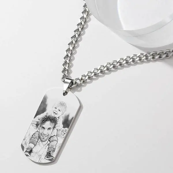Personalised Photo Necklace Men's Jewelry With Engraving Text Stainless Steel Necklace Father's Day GIft For Dad