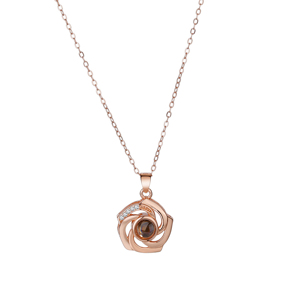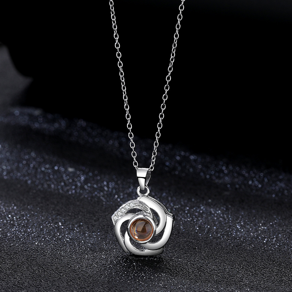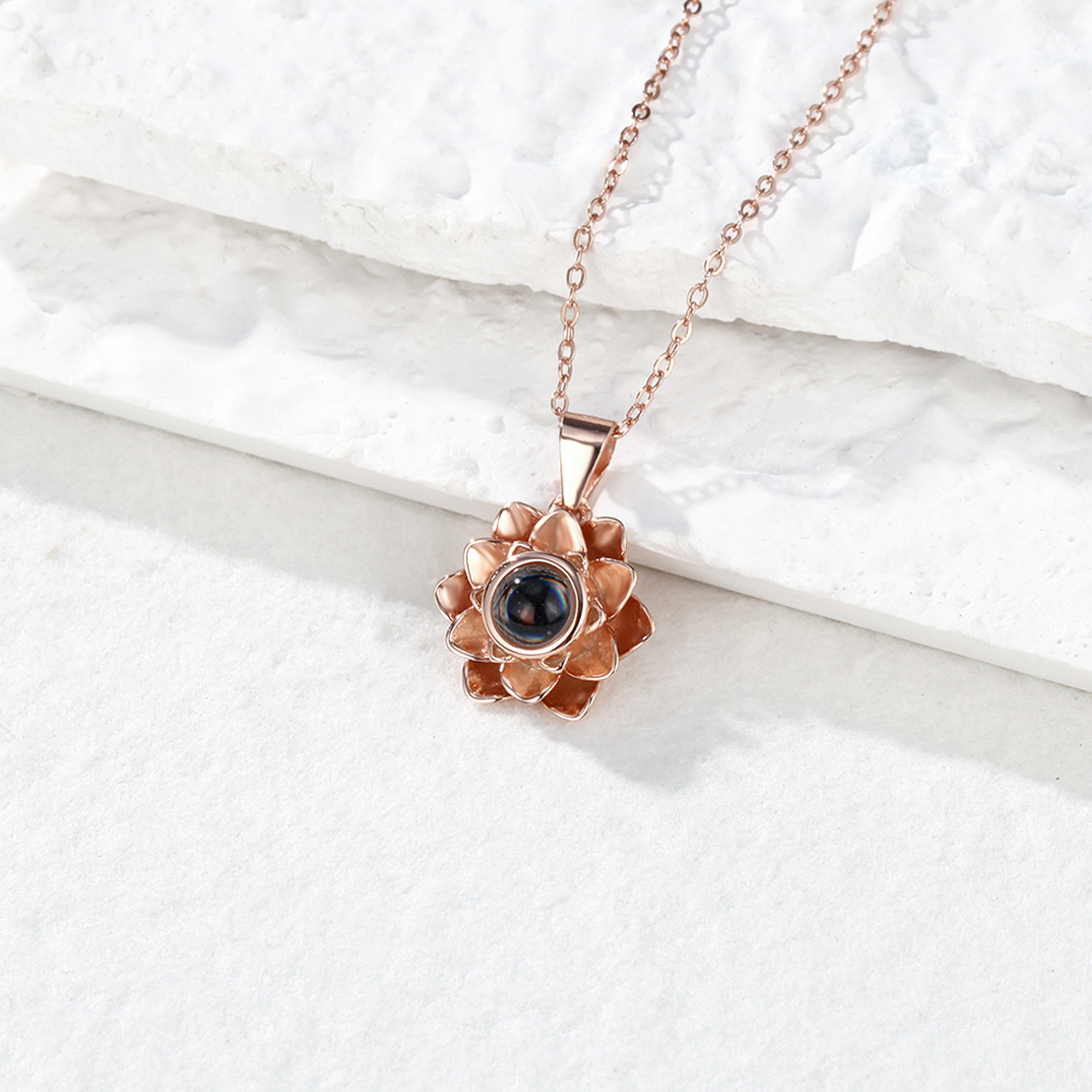 925 Silver Necklace Personalized Flower Projection Photo Necklace