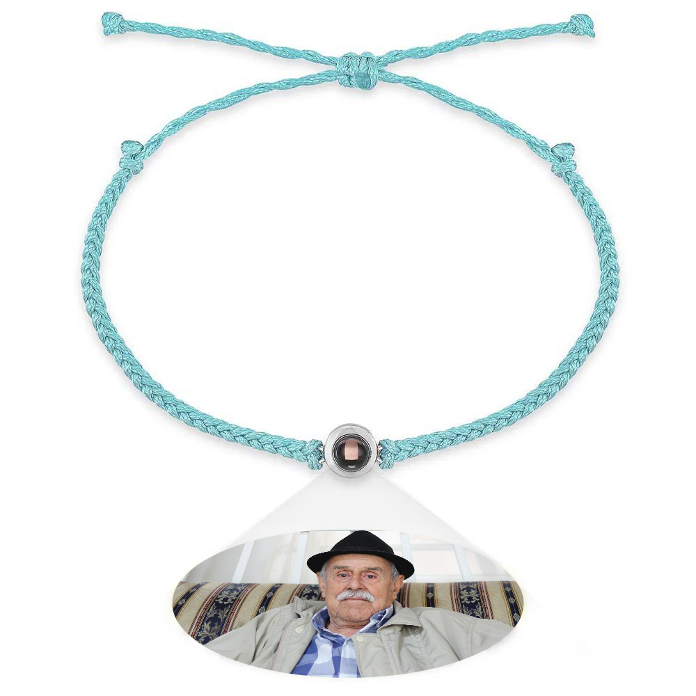 Personalized Photo Projection Couple Bracelet Braided Black Rope Bracelet Gift for Parents and Grandparents