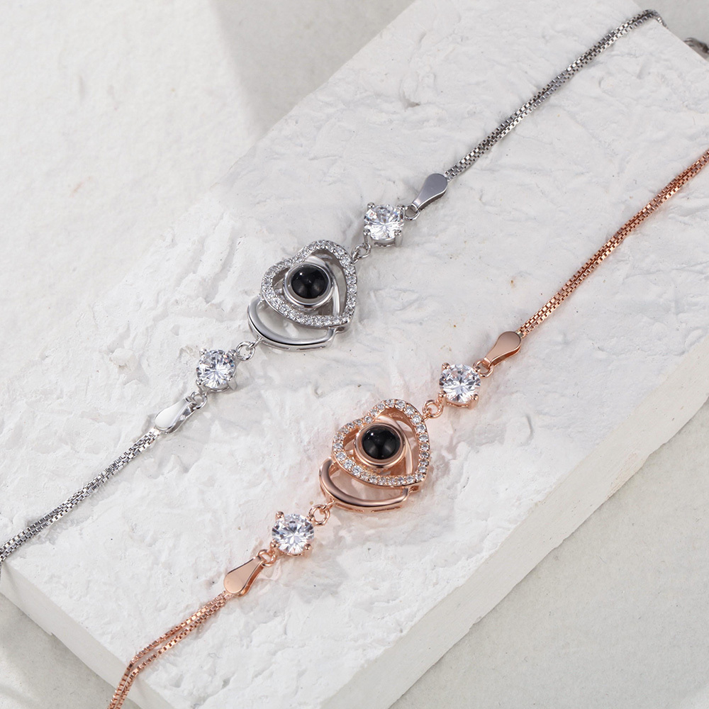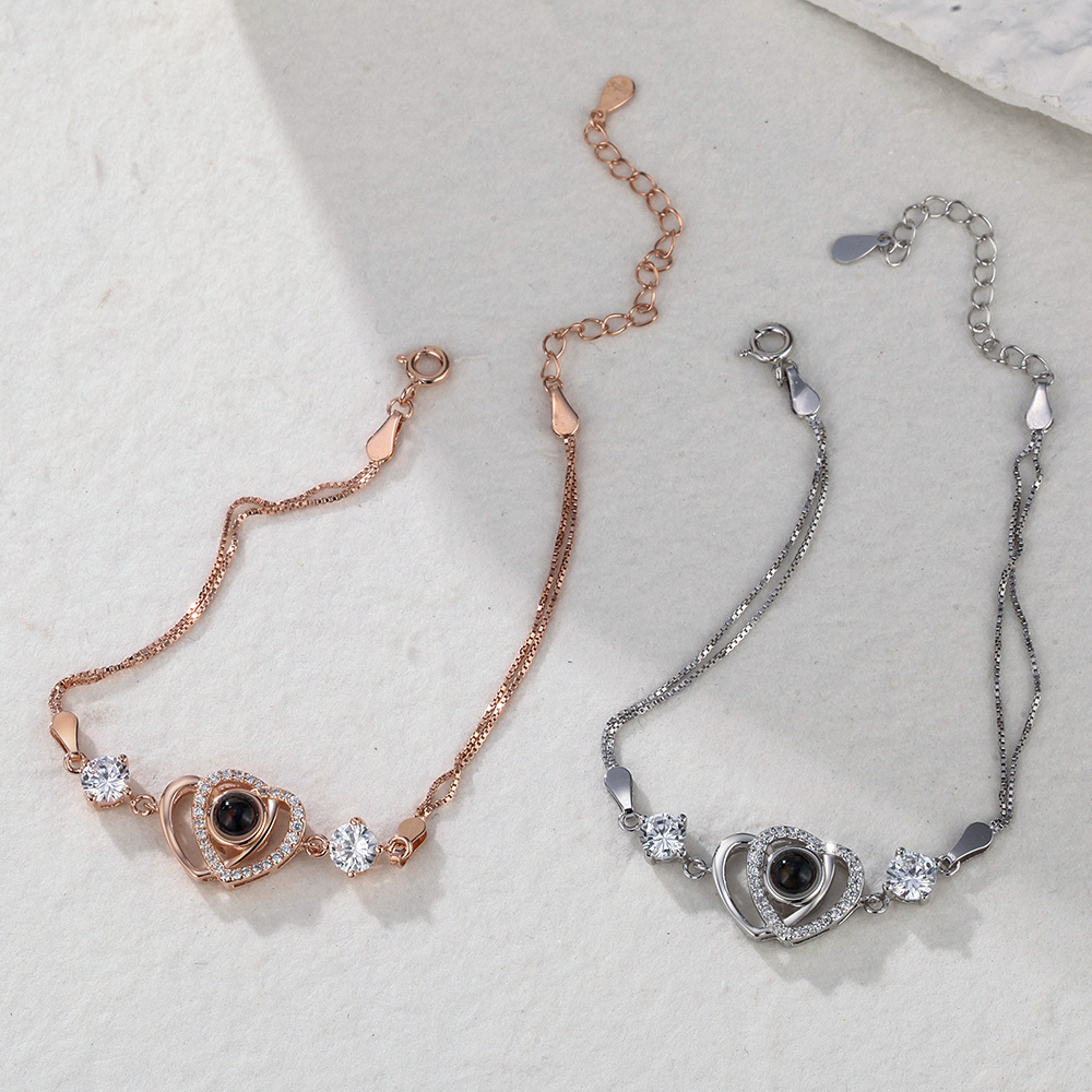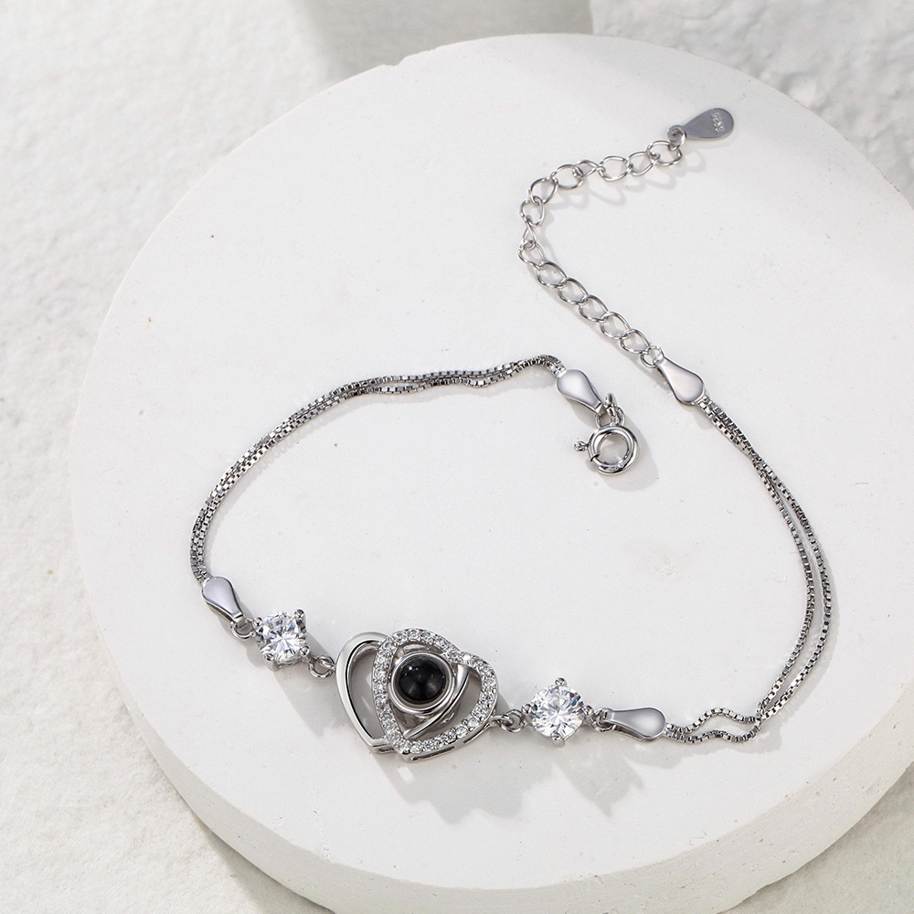 Custom Double Heart Projection Bracelet 925 Sterling Silver