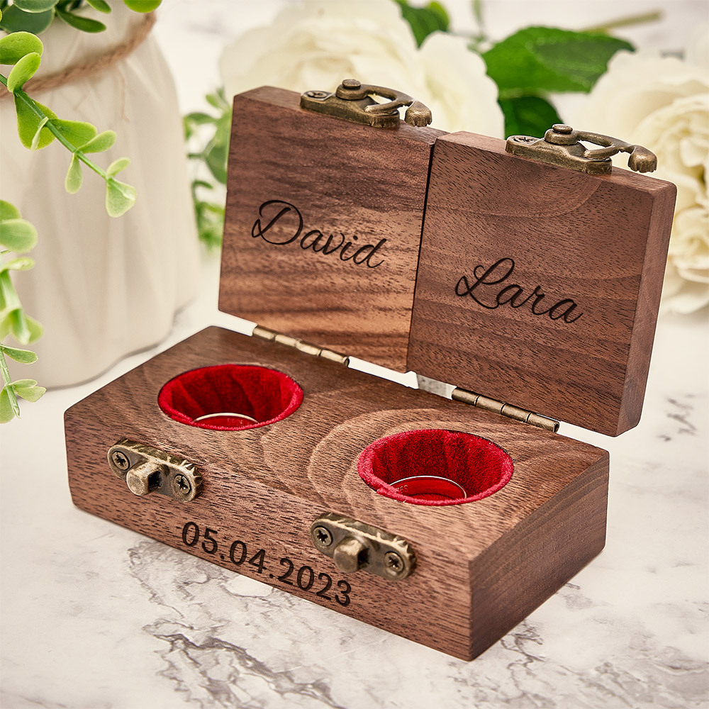 Custom Double Ring Boxes Personalized Wood Ring Bearer Box