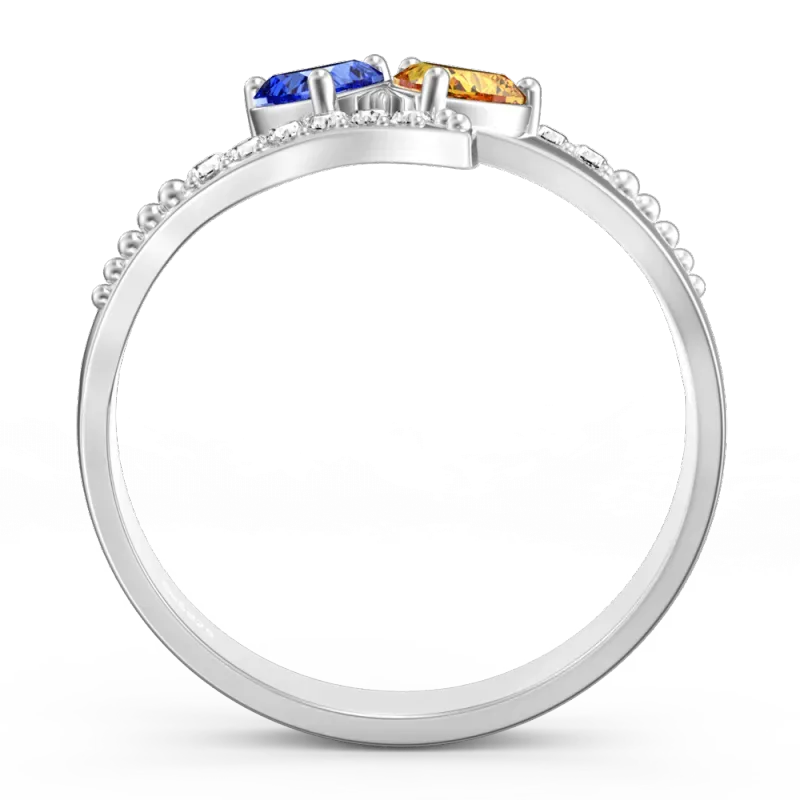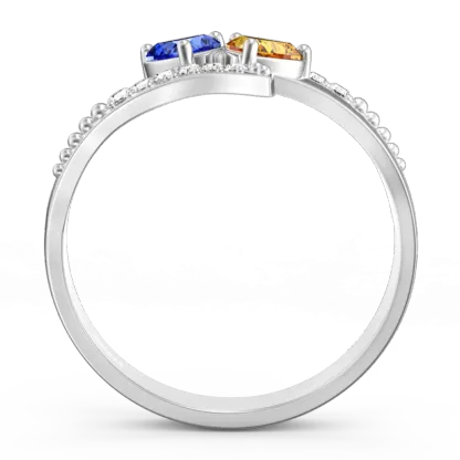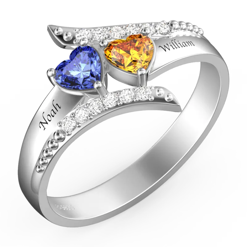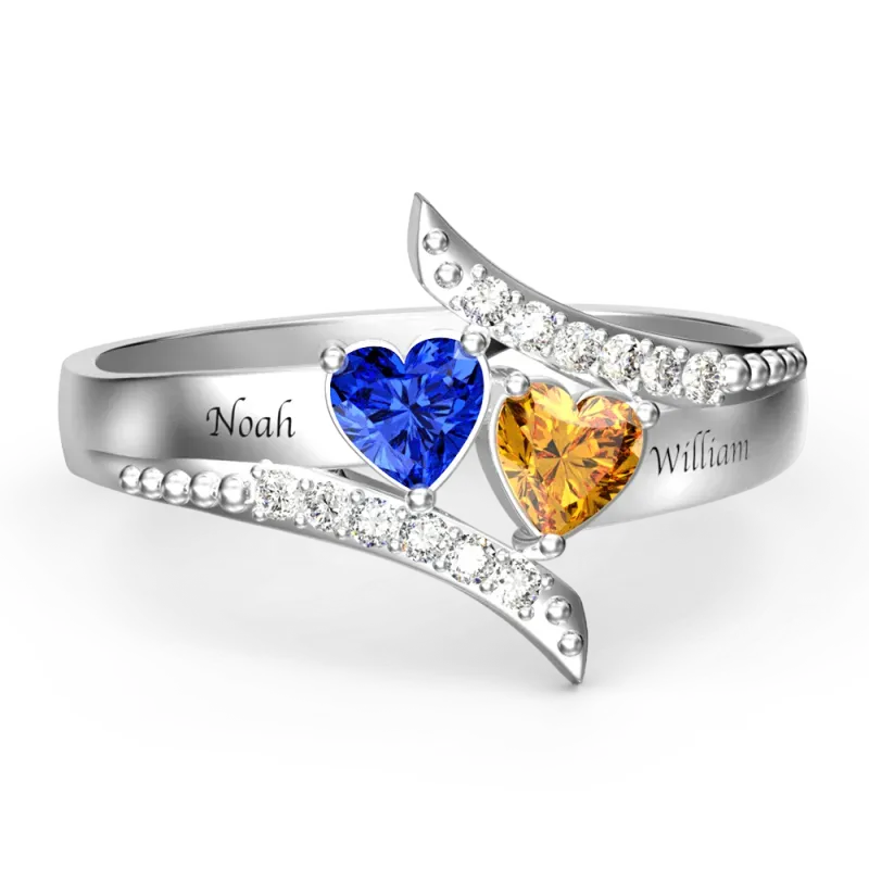 Custom Engraved Names Double Heart Birthstone Promise Silver Ring Wedding Gift Anniversary Gift Birthday Gift Valentines Gift