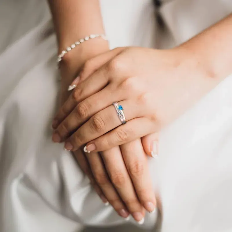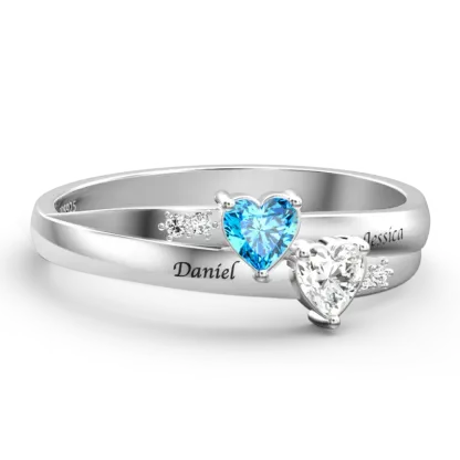 Custom Engraved Names Double Heart Birthstone Silver Promise Ring Wedding Gift Anniversary Gift Birthday Gift Valentines Gift