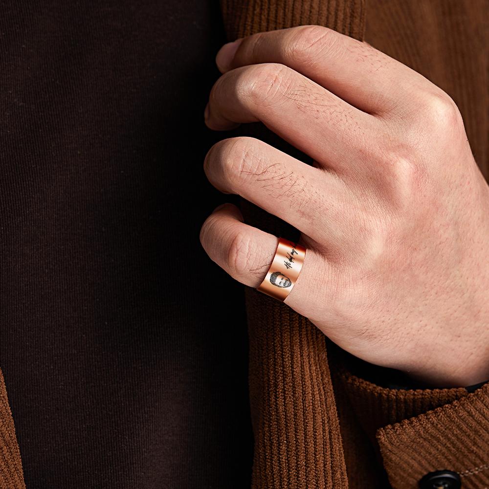 Custom Men's Ring Personalized Photo Ring With Engraved Words Perfect Gift For Daddy On Father's Day