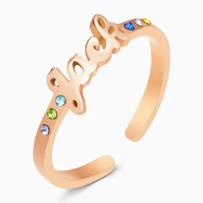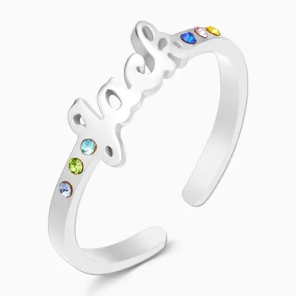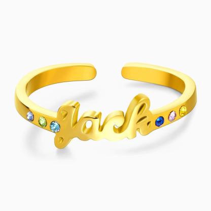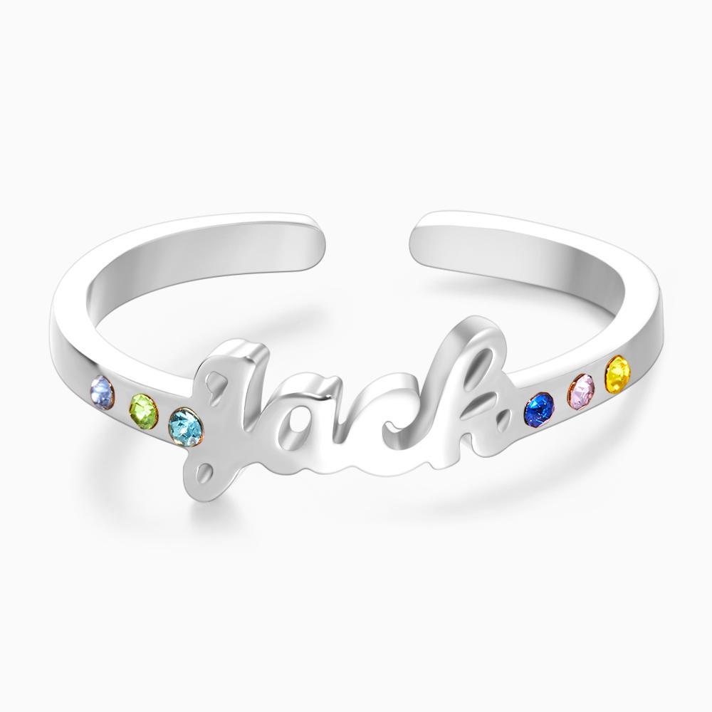 Custom Name Ring with Six Birthstones Anniversary Gift Valentine's Day Gift