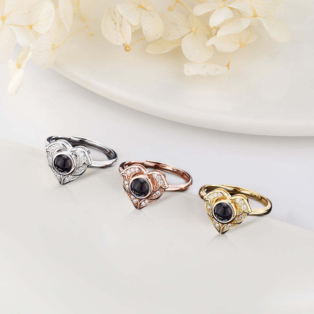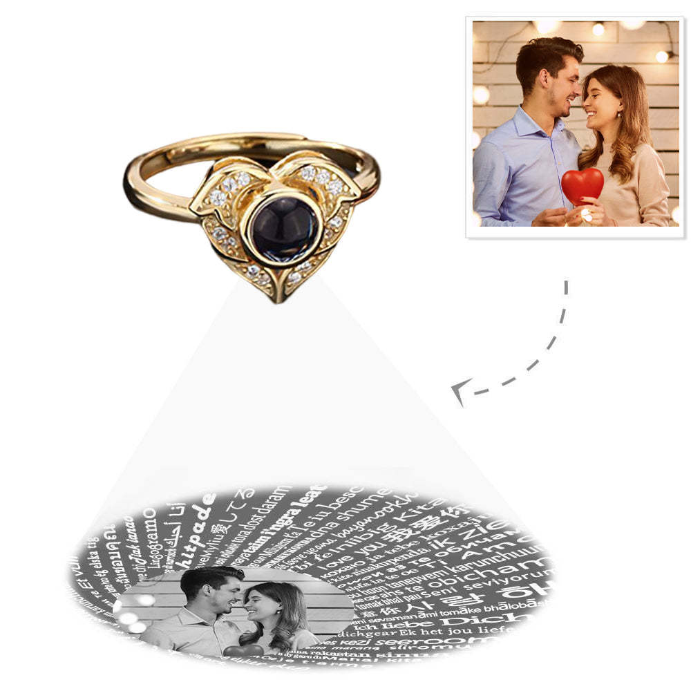 I Love You in 100 Languages Projection Ring Custom Photo Angel Wings Heart Rings
