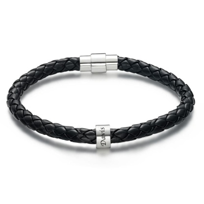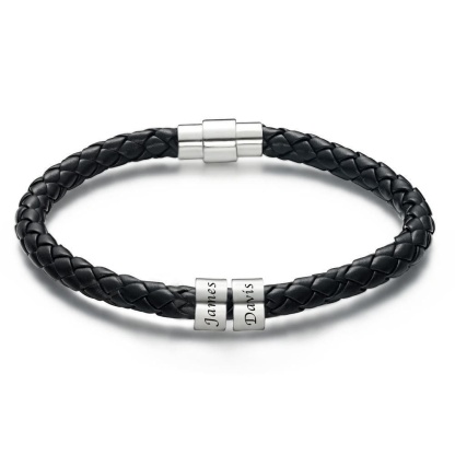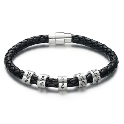 Men's Leather Bracelet Custom Engraved Bracelet Black Leather Beads Bracelet Small Custom Bead for Him 1-6 Charms