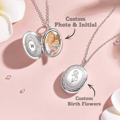 Personalized Birth Flower Locket Necklace with Photo Necklace Jewelry Gift for Her