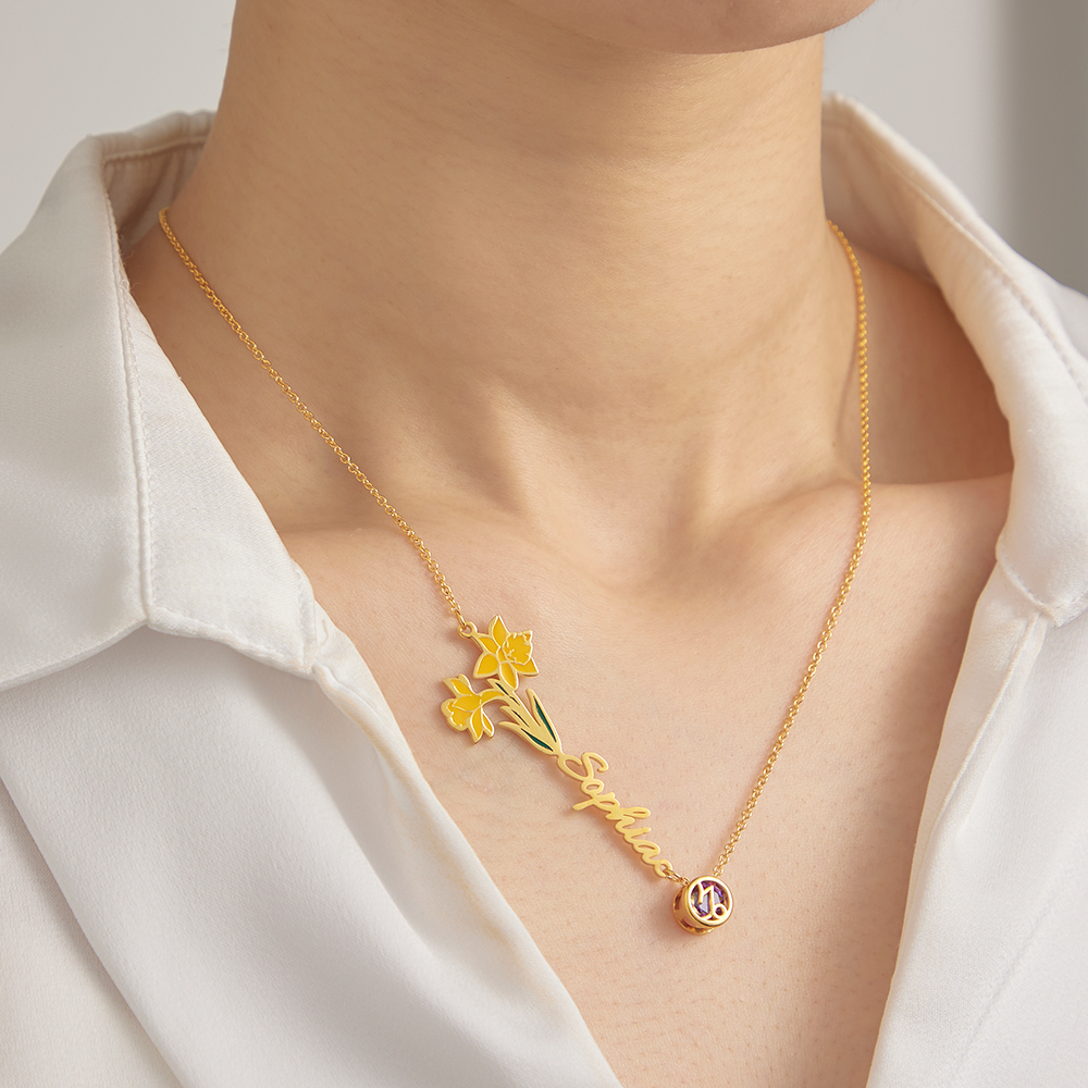 Celebrate your loved ones with our personalized birth flower and star sign name necklace. This stunning piece combines a custom name with their birth flower and zodiac sign, creating a unique and heartfelt gift. Perfect for weddings, birthdays, or any special occasion, this necklace beautifully embodies individuality and personal significance. Crafted with care and elegance, it’s a meaningful keepsake that shows how much you care, making it a wonderful choice for anyone you cherish!