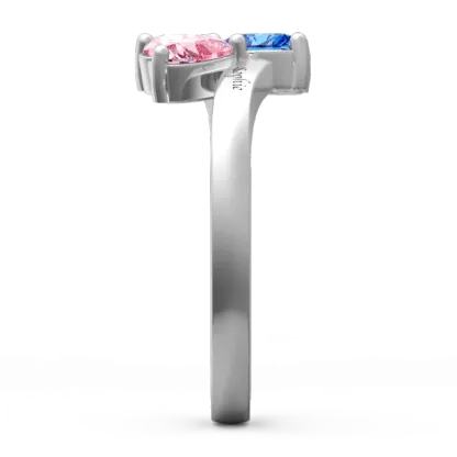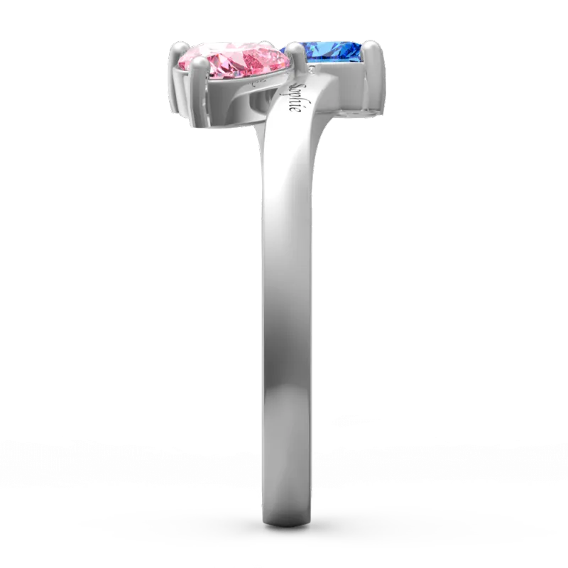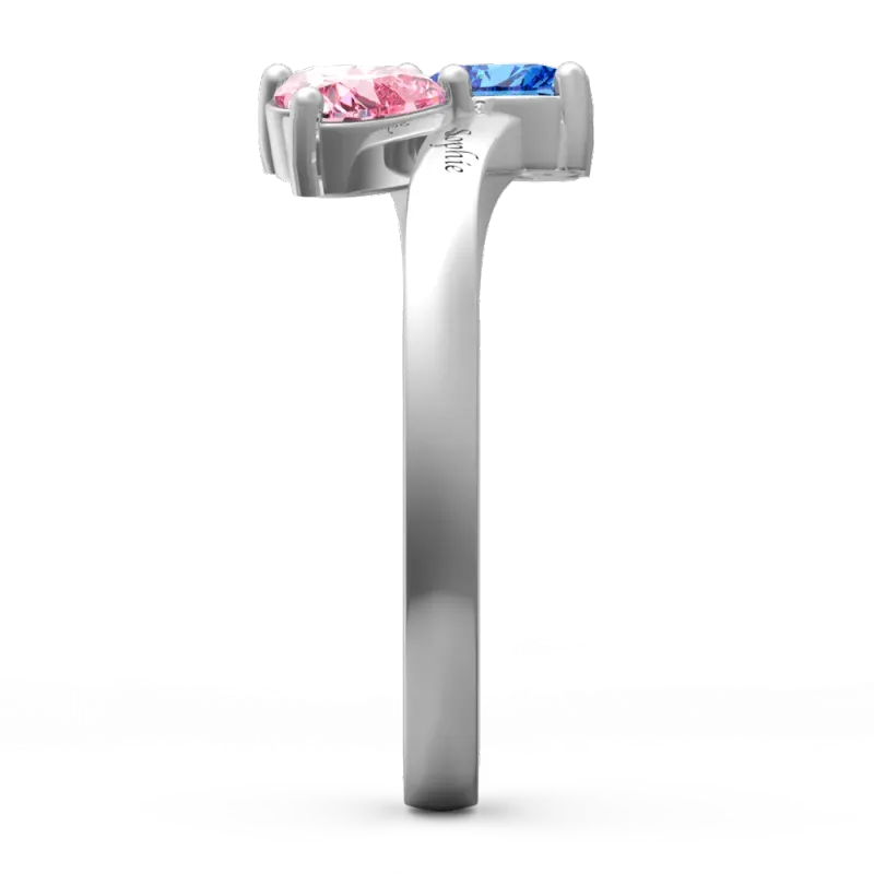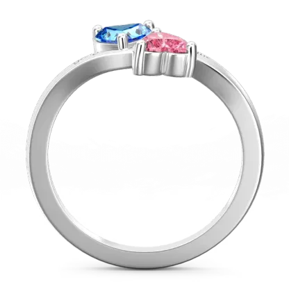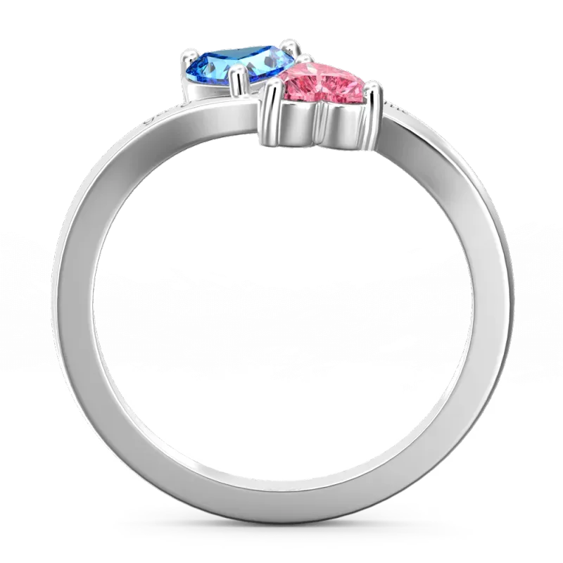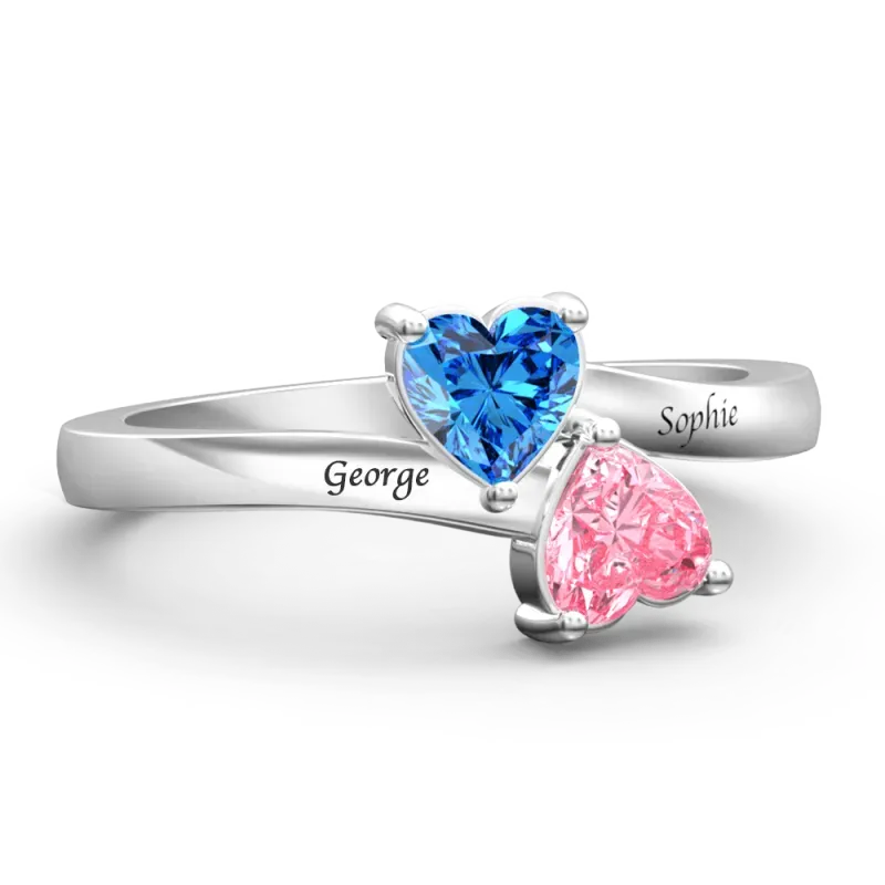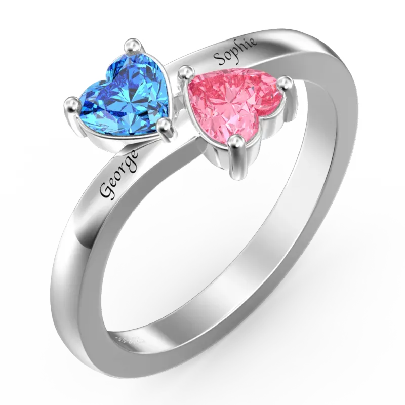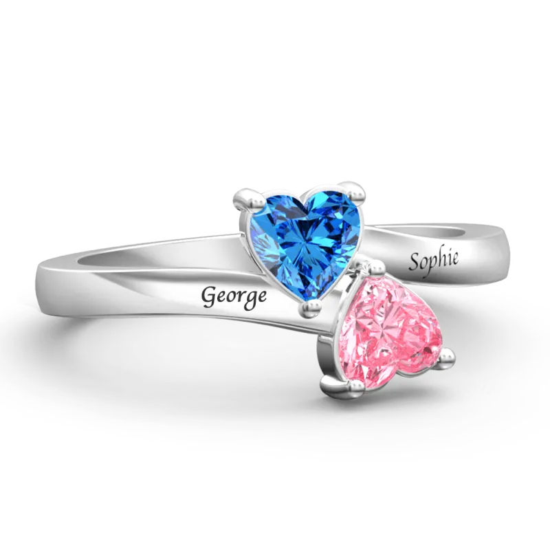 Personalized Birthstone Silver Ring with Engraving Double Heart Promise Ring Wedding Gift Valentines Gift
