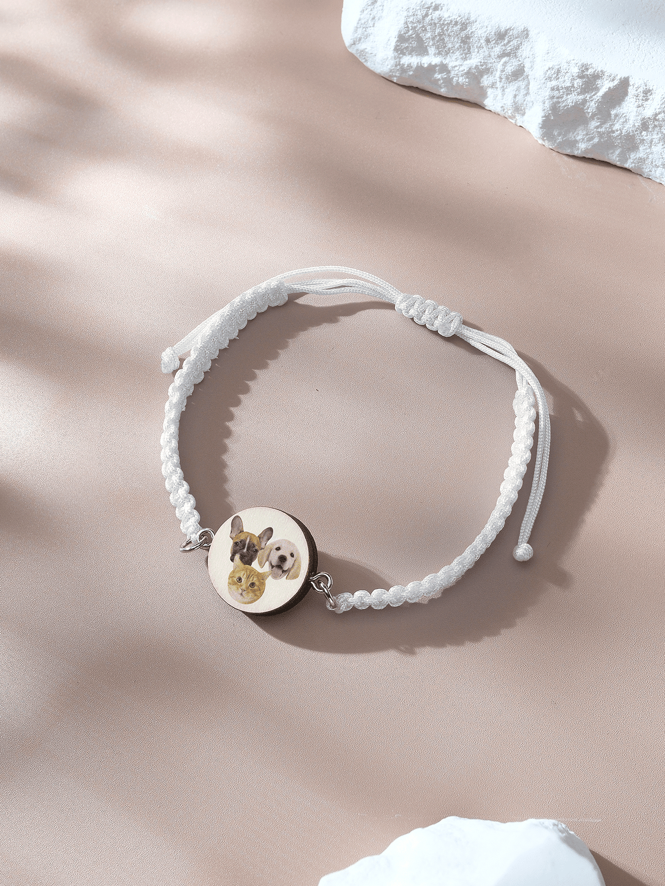 Personalized Pet Portrait Adjustable Braided Bracelet Birthday Gift for Pet Lover