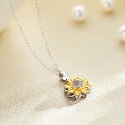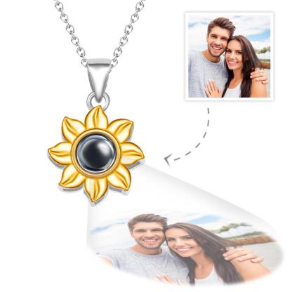 Custom Projection Photo Necklace Sunflower Pendant Necklaces 925 Sterling Silver